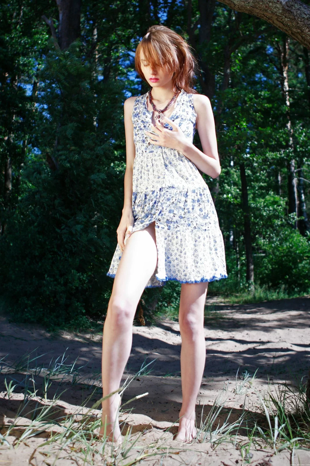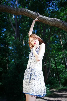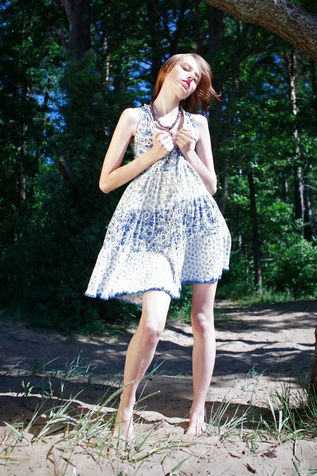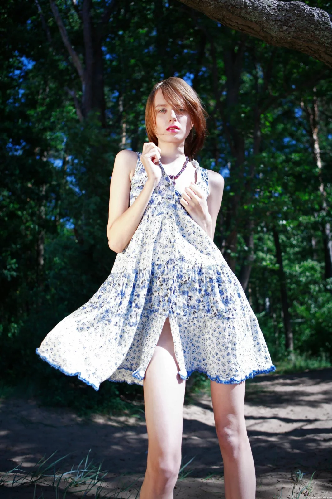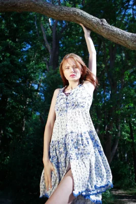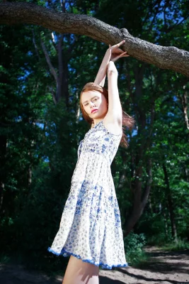 Легкое платьице на милой рыженькой девушке