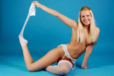 Пробный эротический фотосет на голубом фоне