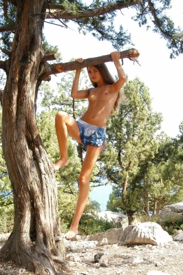 Откройте для себя захватывающую эротическую фотогалерею: юная акробатка позирует обнажённой на дереве, демонстрируя гибкость, грацию и природную красоту. Эксклюзивные фотографии погружают в атмосферу гармонии тела и природы. Только для взрослых!