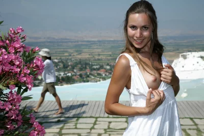 Дерзкая красавица уверенно обнажается на публике, демонстрируя идеальные формы и раскованность. В этой эротической фотогалерее ты откроешь для себя смелые образы, страсть и пленительную сексуальность настоящей красотки без комплексов.