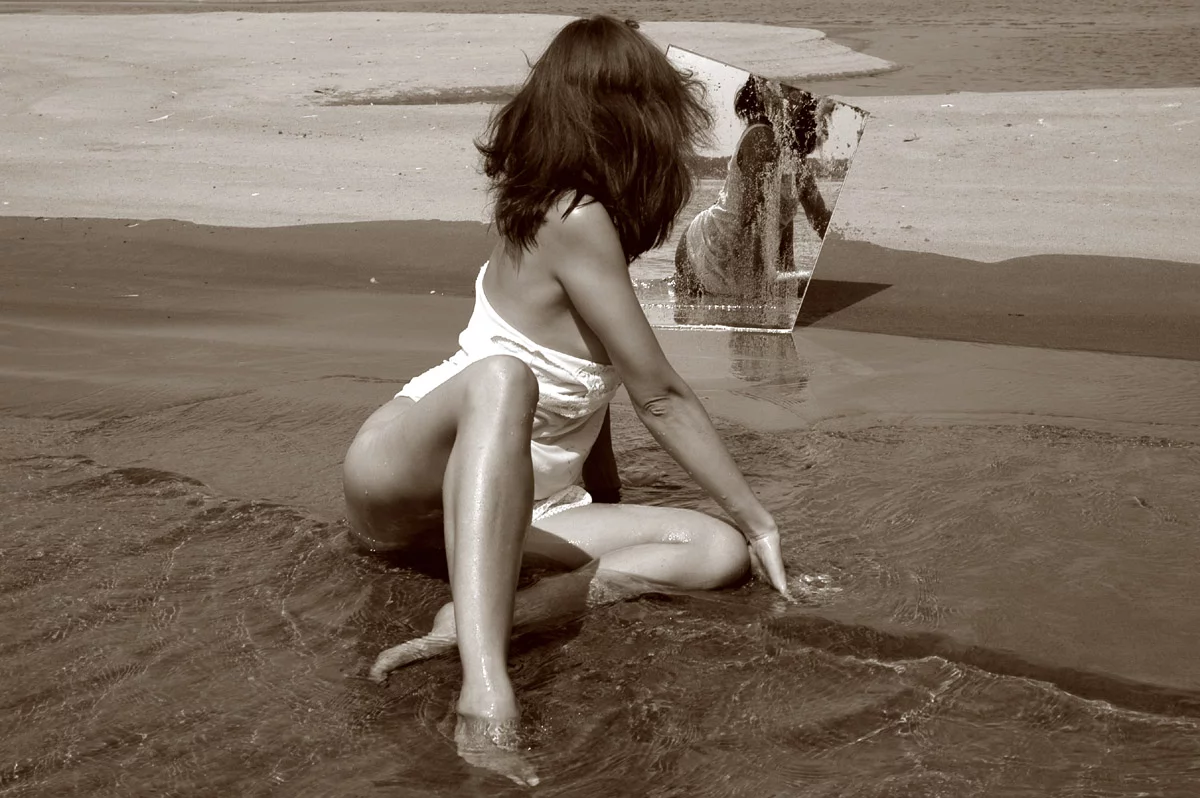Черно-белое красивое ню на пляже